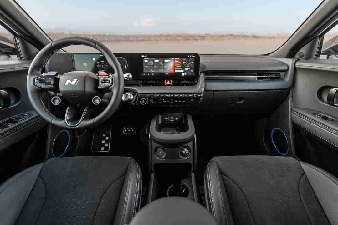 Di dalam kabin, Ioniq 5 N memaparkan unsur-unsur berjenama N, stereng N yang direka semula, konsol tengah yang difokuskan ke litar, dan tempat duduk baldi N yang diperkuat. Mengapresiasi kelestarian, ruang dalaman melibatkan komponen boleh dikitar semula dan kulit yang diproses secara ekologi, menyumbang kepada reka bentuknya yang peka alam dan kebanyakan berwarna hitam dengan aksen Performance Blue.