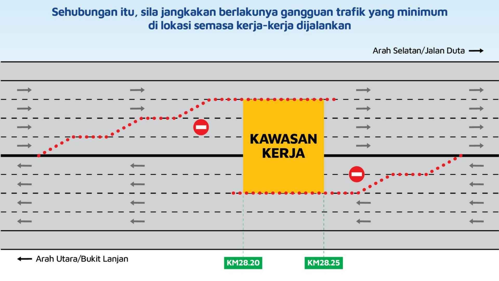 Pihak konsesi turut memaklumkan pasukan pengurusan trafik akan ditempatkan untuk mengawal laluan, memastikan keselamatan dan kelancaran.